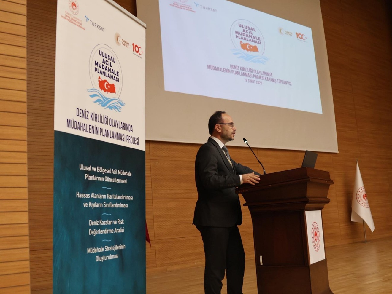 Denizlerimizi koruma hedefi doğrultusunda, 5312 Sayılı Deniz Çevresinin Petrol ve Diğer Zararlı Maddelerle Kirlenmesinde Acil Durumlarda Müdahale ve Zararların Tazmini Esaslarına Dair Kanun kapsamında Çevre Yönetimi Genel Müdürlüğümüz tarafından yürütülen Deniz Kirliliği Olaylarında Müdahalenin Planlanması Projesi Faz-I başarıyla tamamlandı. Toplantının açılış konuşmaları, Çevre Yönetimi Genel Müdürümüz Sayın Fatih TURAN ile TÜRKSAT Genel Müdür Yardımcısı Sayın Ahmet SAVAŞ tarafından gerçekleştirildi. Genel Müdürümüz Sayın TURAN, bütüncül yaklaşım, güçlü veri altyapısı ve dijitalleşme vizyonuyla tamamlanan projenin, Türkiye’nin denizlerini koruma konusundaki kararlılığını somut ve sürdürülebilir adımlarla ortaya koyduğunu belirtti.