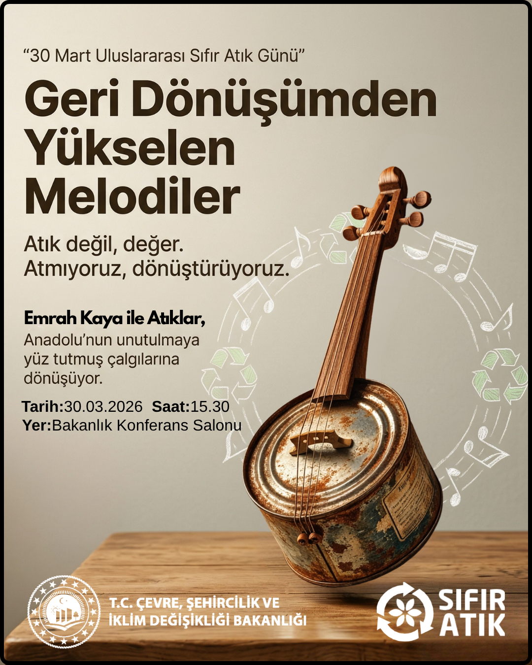 30 Mart Uluslararası Sıfır Atık Günü kapsamında düzenlenen “Geri Dönüşümden Yükselen Melodiler” doğanın zarafeti ile insan emeğinin inceliğini aynı sahnede buluşturarak katılımcılara unutulmaz bir deneyim yaşattı. Sıfır atık gönüllüleri ve emektarlarının yoğun ilgi gösterdiği etkinlikte, çevre bilinci sanatsal bir dille ifade edildi.