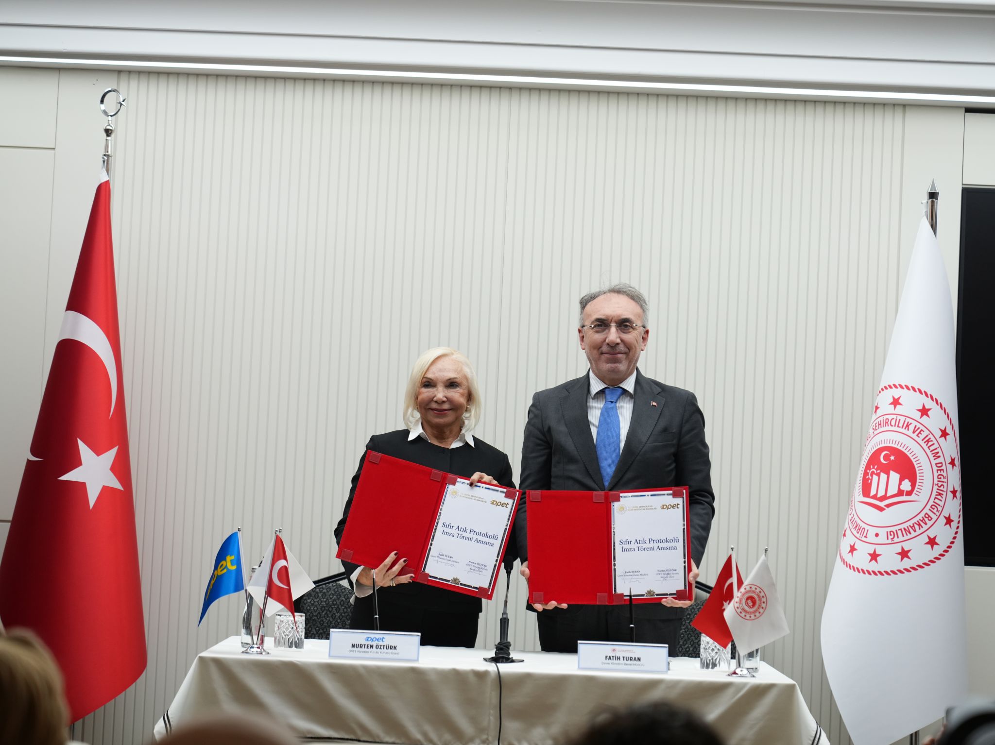 Konuşmaların ardından, Çevre Yönetimi Genel Müdürü Fatih Turan ile OPET Yönetim Kurulu Kurucu Üyesi Nurten Öztürk arasında iş birliği protokolü imzalandı.