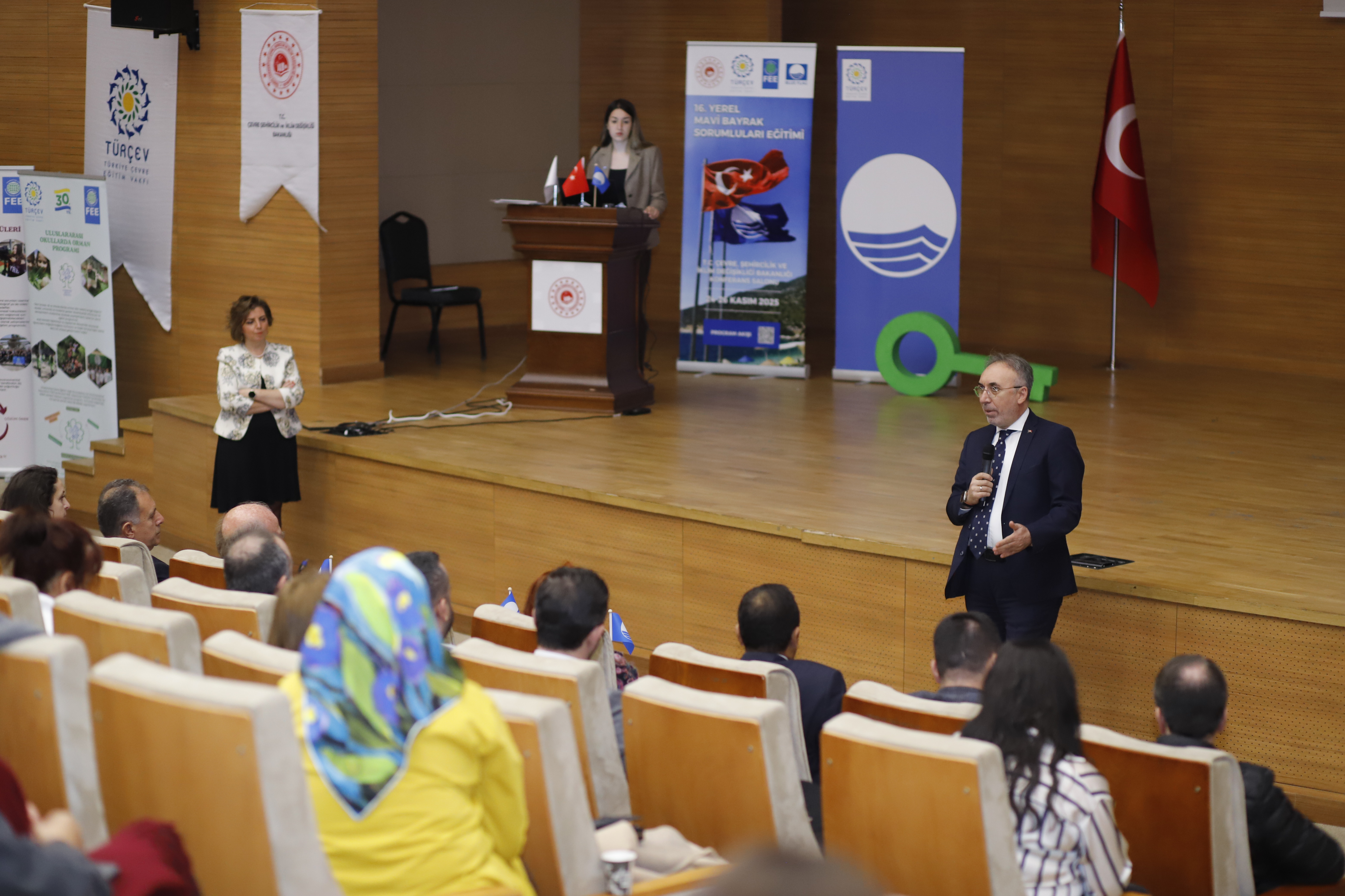 Türkiye Çevre Eğitim Vakfı (TÜRÇEV) tarafından olarak, her yıl düzenli olarak yapılan Mavi Bayrak Yerel Sorumlular Eğitiminin 16’ıncı Bakanlığımız ev sahipliğinde 24-26 Kasım 2025 tarihleri arasında gerçekleştirildi. Bakanlığımız konferans salonunda gerçekleştirilen eğitime Bakanlığımız ve TÜRÇEV yetkililerinin yanı sıra, Kültür ve Turizm Bakanlığı, Sağlık Bakanlığı ile yüzme alanlarına sahip valilikler, kaymakamlıklar, belediyeler ve Deniz Temiz Derneği/TURMEPA temsilcilerinden oluşan yaklaşık 160 kişi katılım sağlamıştır.